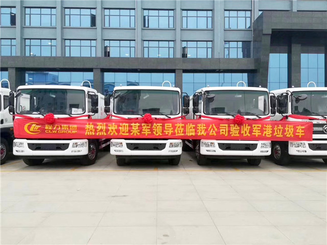某軍港領導蒞臨我公司驗收13輛軍港壓縮式垃圾車,程力產品,軍工品質。