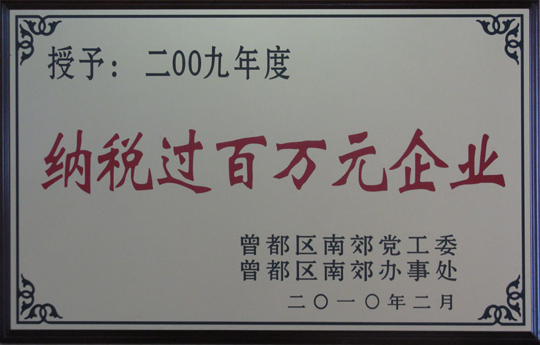 | 納稅過百萬元企業 | 曾都區2008年度外貿出口工作先進單位 | 2010十佳地稅納稅人 |