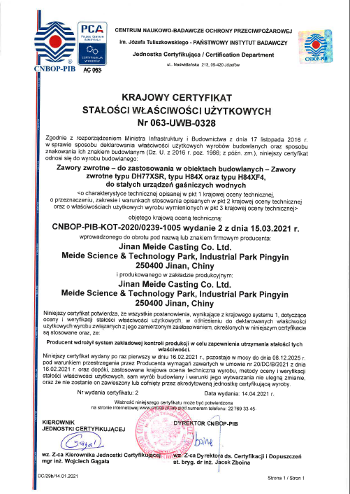 MEIDE GROUP’s Check valve products have been approved by CNBOP, Poland.