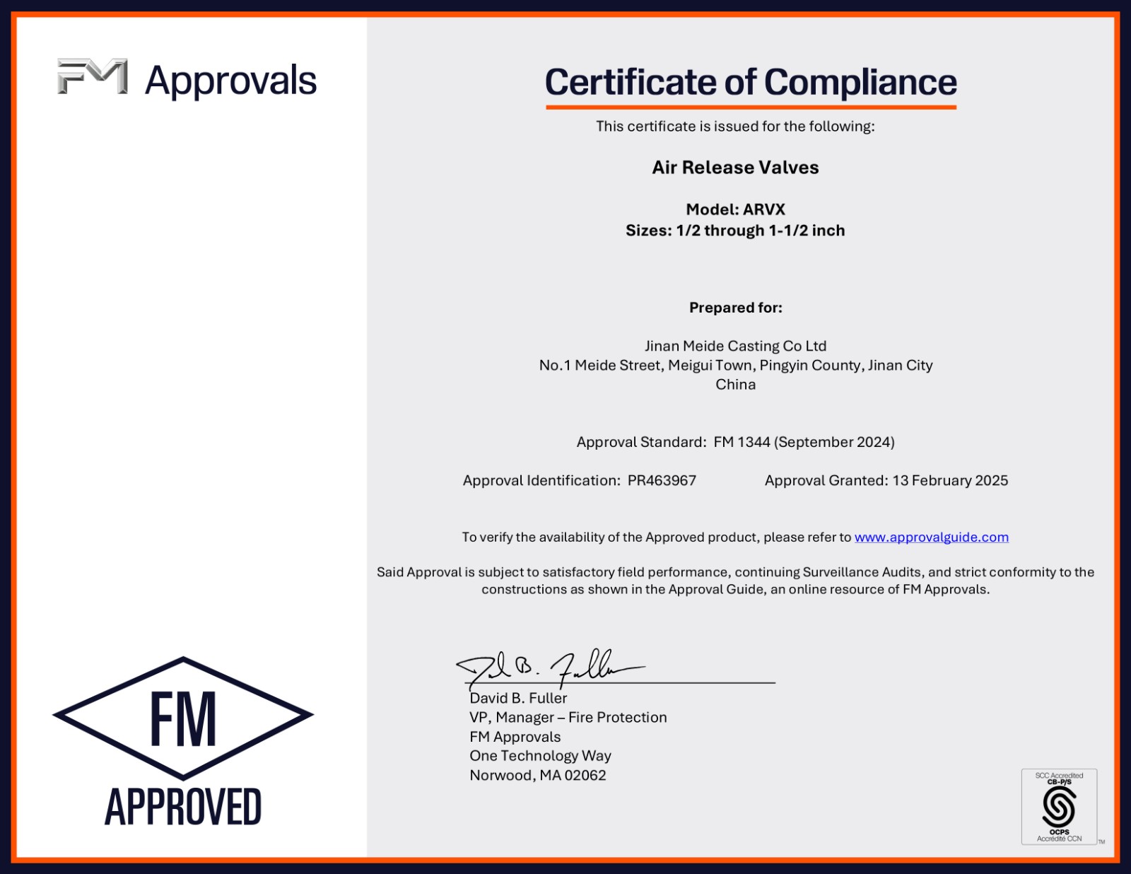 Meide Group's Micro Air Bleeding Valve "ARVX" obtains FM certification