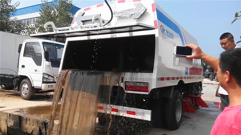 光大集團定購的多功能掃路車為訂購版,采用的是東風(fēng)福瑞卡底盤改裝,垃圾箱容積2立方,水箱容積3立方,另外加裝有前沖后灑功能,閑暇時可用于沖灑路面。