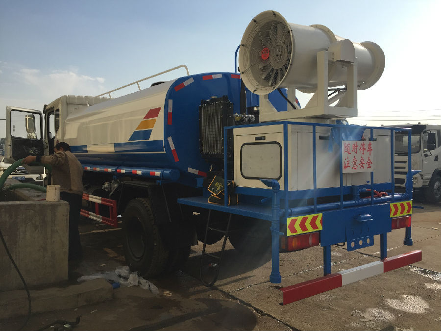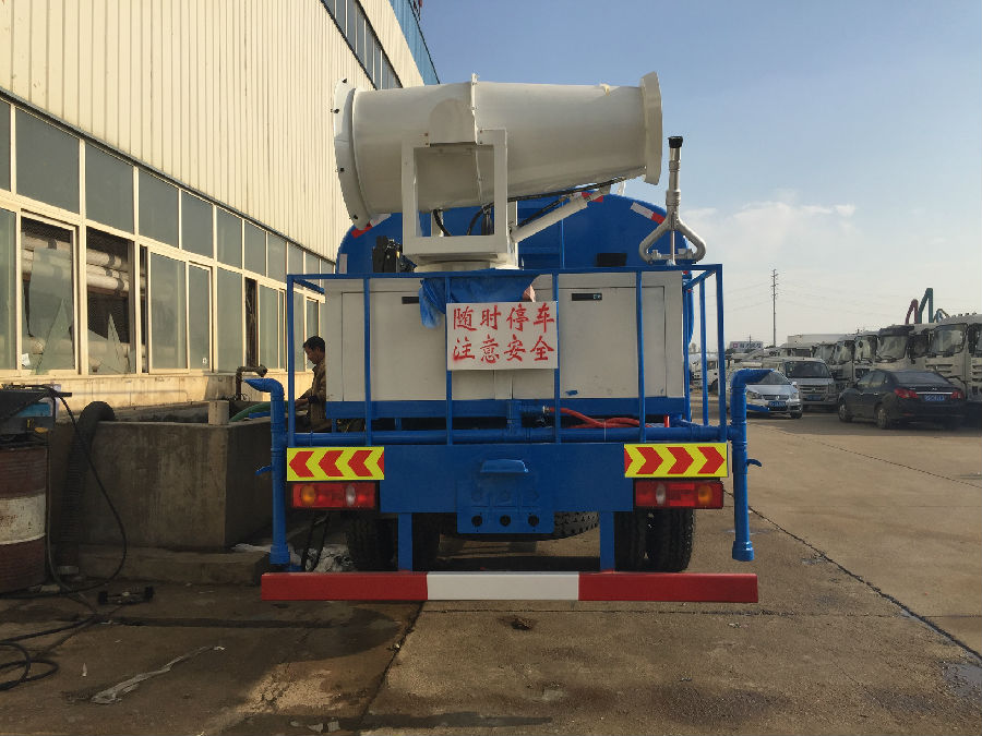 單橋可裝50-60米噴霧機(jī)車型,閃亮登場(chǎng)。整車型號(hào):DLQ5180GSSL5,底盤型號(hào)EQ5180GLVJ,東風(fēng)新款T5駕駛室,4500MM軸距,國(guó)五,康機(jī)190馬力,陜齒小八檔變速箱,帶原裝ABS。前沖后灑,后工作平臺(tái)帶高炮,右位花灑,側(cè)噴。前橋5噸,后橋10噸,10.00鋼絲胎。后平臺(tái)上加裝50米霧機(jī),水平射程50--55米,發(fā)電機(jī)組30KW,風(fēng)機(jī)電機(jī)11KW,水泵電機(jī)3KW。