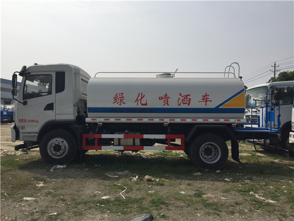 比如說同樣一臺12方的灑水車如果是市政環衛使用他可能就需要標準配置前沖丶后灑丶側噴丶高炮。給街道灑水降塵降溫,給綠化帶澆水。工地或者拆遷使用他可能會加裝霧炮噴灑裝置給工地抑塵避免揚塵。園林綠化果園使用他會選擇加裝農藥噴灑裝置給果樹噴灑農藥。有的需要給洗浴中心運送熱水他會選擇多加裝熱水泵。還有運輸飲用水他的罐體和管道材質可能會選用不銹鋼材質。灑水車的品牌也是多樣化的有東風老款145,東風D9,東風T3,東風天錦,解放,大運,福田等多種品牌。不同的選擇價格肯定不同。