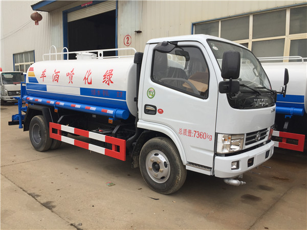 東風多利卡5方灑水車,朝柴73KW柴油發動機(95馬力),7.00-16尼龍胎,灑水車駕駛室顏色白色,自吸自排灑水泵,前沖,后灑,側噴,高位花灑,后平臺灑水炮,水罐容積5立方,2根罐體等長抽水管,一個消防接口,一自流口。