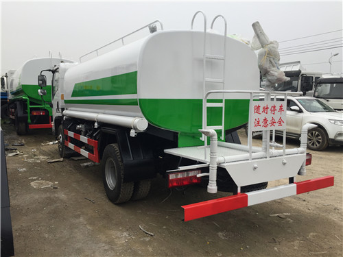 專用部分:具有前沖后灑、側噴(更換噴頭后變為側花灑)、后置式工作平臺(帶踏梯,四周有安全護欄)、平臺上設置有高壓水炮(可360°旋轉,可調成柱狀最大射程28米,也可調成霧狀最大射程14米,可調成:直沖狀、大雨、中雨、小雨、毛毛雨),整車灑水寬度大于14米.配備優質大功率專用灑水泵,取力器,雜物過濾網,國標通用65型消防接口(可通過消防栓加水)、1套自流球閥系統(可自吸自排,最大吸程6米),2根引水鋼絲膠管(帶陰陽快速接頭),配鎖,水位計,作業高音喇叭.兩側及后加強型保險杠,防滑爬梯,膠管儲存筒。