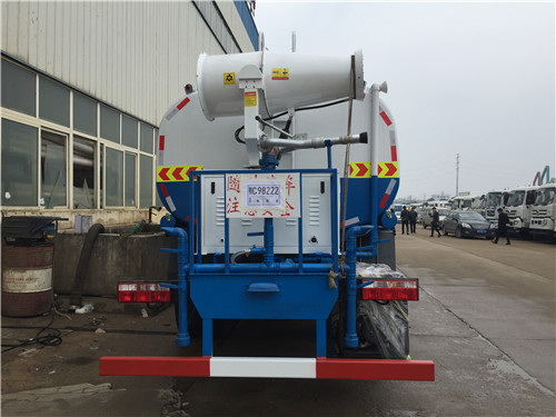 一般環衛灑水車都擁有:前沖(噴)、后灑,帶側噴,罐體后帶工作平臺,平臺上安裝綠化灑水炮,灑水炮可全方位旋轉,可連續調成直沖狀、大雨、小雨、毛毛雨,帶安全護欄,配備優質大功率專用灑水泵,泵可自吸自排,安裝過濾網,帶消防接口,可通過消防栓進水,帶自流閥,隨車選裝20米綠化卷盤,可噴灑農藥,罐體金屬漆。