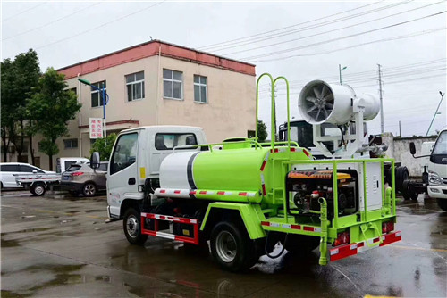 抑塵車前噴頭位置較低,靠近地面,噴灑壓力較大,可用于沖洗路面;后噴頭位置較高(抑塵車后噴頭一般左右各安裝一個),灑水面較寬,可用于公路施工灑水,使用后噴頭時,應將前噴管關閉;使用可調噴頭灑水時,灑水寬度可根據需要調整。灑水寬度越寬,中間重疊量越少,灑水密度越均勻。