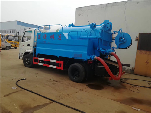 如果吸污車出現了溢罐現象。我們需要清洗被污染的部位:真空泵、油汽分離器,水汽分離器、四通閥(吸污泵開關)、氣管。首先排空吸污車罐體內的污水。然后將讓吸污泵運行一會,排出四通閥、氣管內的污水,雜物(此操作時間要短,防止吸污泵磨損)。然后將吸污泵,油水分離器中被污染的機油放掉,用風槍吹干凈,并更換新的機油。水汽分離器,四通閥以及連接管道,用大量清水沖洗干凈,再用風槍吹干。最后將這些部件原樣裝回,即可照常使用。
