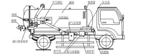 高壓清洗吸污車回油箱位于車架右中部,左通油氣分離器,右連四通閥。