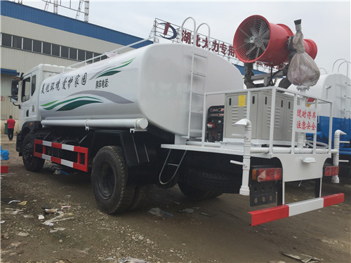 灑水車標配的4項噴灑頭:三彎前沖、后灑、鴨嘴側噴、高壓水炮,每一個噴頭均帶獨立的管道球閥以控制噴頭的開啟與關閉。灑水噴頭開的越多,水流量越大,水的壓力就被分散,道路沖洗效果就會相應降低,這也是有些環衛灑水車只采用一個前沖頭進行道路灑水的原因。但這對于綠化灑水車來說這是一件好事,植物澆水本不需要太大的壓力,多裝個噴頭就能緩解水流沖擊力過大的問題,還能增加澆水量,可謂一舉兩得。所以綠化灑水車高位花灑位置一般是2個噴頭,常有客戶會要求裝到3-4個噴頭,就是這個道理。