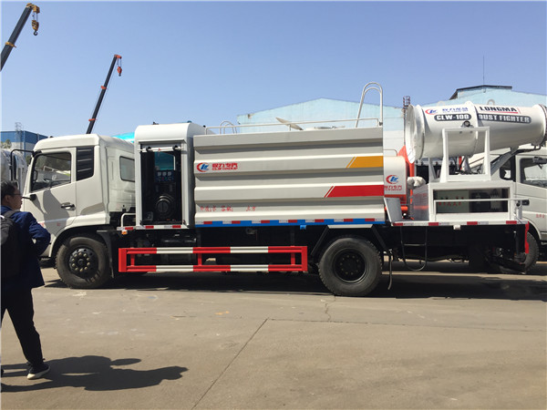本車具有獨立的高、低壓兩套水路系統,為抑塵車工作提供壓力水源。其工作原理是:利用高壓水泵產生的高壓水,經噴水架的高壓噴嘴噴出,利用高壓水流的動能,以高壓力、低流量的方式抑塵,超遠射程,高效節水,能將路面的陳舊污漬抑塵干凈;或高壓水經左(右)角噴噴出,清洗路緣、人行道及護欄隔離區;使用高壓噴槍還可抑塵路標、廣告牌、高架路等;噴霧系統具有強大的噴霧降塵、噴撒空氣消毒劑及調節空氣濕度功能。