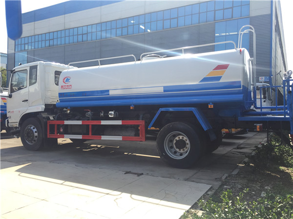 新款東風天錦灑水車改裝配置:灑水車專用部分由罐體、水泵、取力器、傳動軸、球閥、噴灑裝置等部件組成。罐體采用5mm厚武鋼專用板材制作,實際容積12-14.5立方,罐體內采用先進的對焊接工藝,罐體內設防蕩防波隔板,下端有通孔,罐體成型后高壓氣體試漏檢測,使罐體具有強度高、重心穩、車輛運載安全平穩等特點。