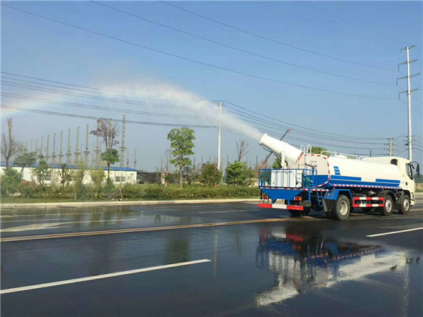 在常規(guī)灑水車(chē)的基礎(chǔ)上,加裝了抑塵噴霧系統(tǒng),外接的380V配套動(dòng)力組把罐體內(nèi)的水霧最大霧化作業(yè)行程高達(dá)20-100米,穿透性好,作業(yè)效率高,大大降低了勞動(dòng)力成本。可對(duì)煤堆噴灑抑塵劑、固化劑,使得煤灰不會(huì)被風(fēng)吹起,降低空氣粉塵污染。采用了遙控操作指揮系統(tǒng),可360度旋轉(zhuǎn),兼具綠化噴灑,消防應(yīng)急,除塵降塵,噴藥消毒等功能,遠(yuǎn)程遙控,使用方便。