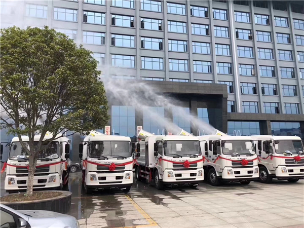 2.爆破抑塵車效率高、射程遠(yuǎn)、覆蓋面積大、水霧且均勻、抑塵效果好。水霧與飄在空中的塵埃接觸時(shí),被塵埃所吸附,加大塵埃的比重,抑制塵埃在空氣中的流動(dòng),并加速塵埃沉降,實(shí)現(xiàn)對(duì)空氣的凈化。