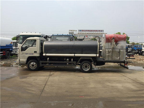 福田時代5噸抑塵車:福田時代底盤,軸距3360mm,安徽全柴490EGR發動機,7.00-16尼龍胎,帶暖風,氣剎(或油剎),不上牌抑塵車價格最低。▲垂直吸程>7米,灑水寬度>14米,射程>28米。前沖(噴)):(能將路面泥巴、塵土、垃圾沖干凈);后灑(能均勻地將水灑在路面,灑水寬度>14米)、前側噴(花灑)(均勻地將路旁綠化帶澆灌)、后工作平臺,平臺上裝綠化灑水炮(炮有大雨、中雨、毛毛雨、霧狀可調節沖洗高大樹木),灑水泵,消防接頭,自流閥,過濾裝置、人性化爬梯及側防護欄,音樂喇叭。