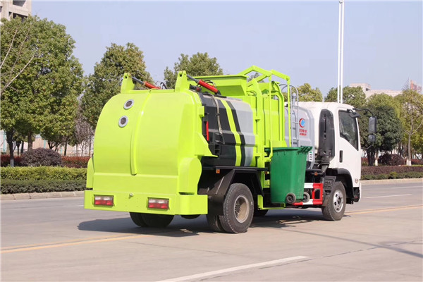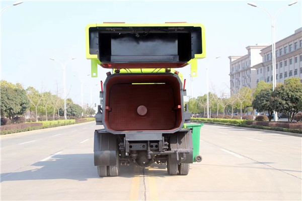 餐廚垃圾車由密封式垃圾廂、液壓系統、操作系統組成。整車為全密封型,自行壓縮、自行傾倒、壓縮過程中的污水全部進入污水廂,較為徹底的解決了垃圾運輸過程中的二次污染的問題,避免了給人們帶來不便,關鍵部件采用進口部件,具有壓力大、密封性好、操作方便、安全等優點。 可選配后掛桶翻轉機構或垃圾斗翻轉機構。