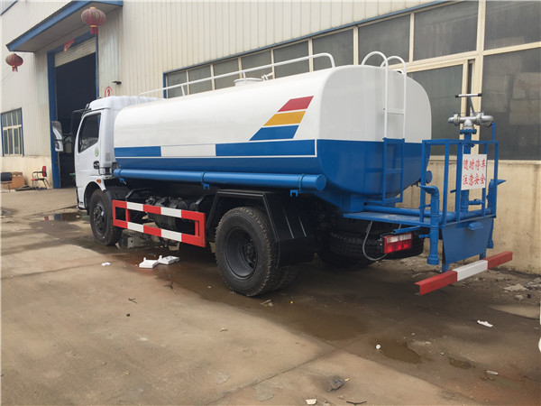 東風多利卡5方灑水車,朝柴73KW柴油發動機(95馬力),7.00-16尼龍胎,灑水車駕駛室顏色白色,自吸自排灑水泵,前沖,后灑,側噴,高位花灑,后平臺灑水炮,水罐容積5立方,2根罐體等長抽水管,一個消防接口,一自流口。