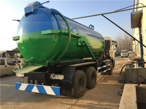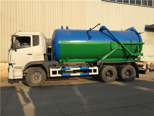 蓄污池整理轉運,城市管道整理疏通,工廠沼液沼渣整理. 18噸東風吸污車的組成:油水別離器,水氣別離器,專用真空吸糞泵,容積壓力表,管網體系,吸物導管,自流閥,真空罐體,連通器(視糞窗),全自動防溢閥.避免下水道阻塞.