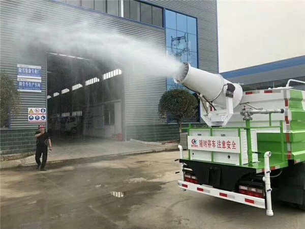 抑塵車功轉換效率高、射程遠、覆蓋面積大、霧粒細小且均勻、抑塵效果好。水霧與飄在空中的塵埃接觸時,被塵埃所吸附,加大塵埃的比重,抑制塵埃在空氣中的流動,并加速塵埃沉降,實現對空氣的凈化。