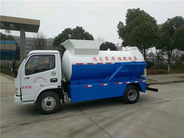 餐廚垃圾車:整車為全密封型,自行壓縮、自行傾倒、壓縮過程中的污水全部進入污水廂,較為徹底的解決了垃圾運輸過程中的二次污染的問題,具有壓縮比高、壓力大、裝載量大
