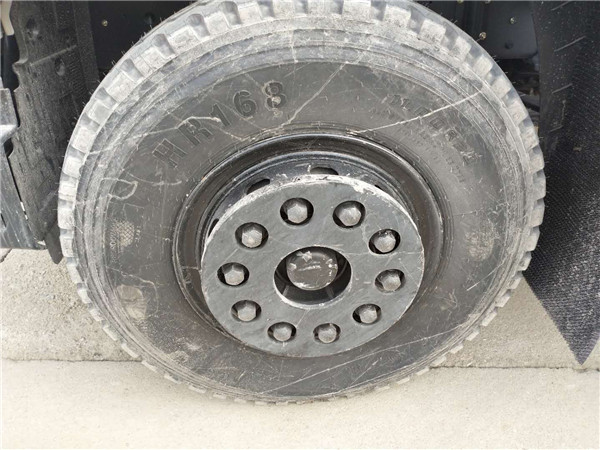 陜汽灑水車輪胎胎面還有一個安全塊,一般輪胎花紋高于安全塊1.6MM就需要更換輪胎了,看上面的輪胎,花紋和安全塊已經在一個平面了,所以這樣的輪胎是極其危險的。