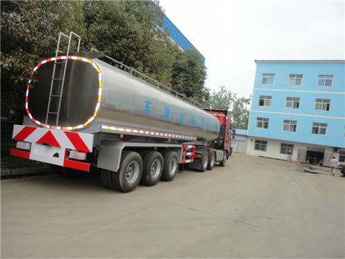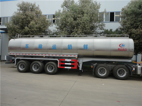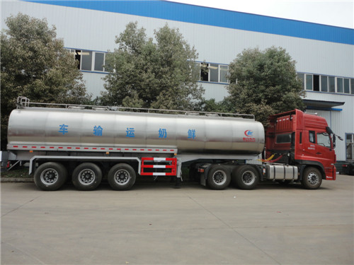 2、鮮奶運輸車罐體容積45立方,分5倉,罐體外部需作保溫層防止鮮奶變質(zhì),罐體內(nèi)部用特種設(shè)備拋光,可充分保證鮮奶不掛壁,內(nèi)部要求光潔、無銳角,在每個奶艙內(nèi)加上cip(清洗裝置)。 鮮奶運輸車罐體整體分三層,罐體內(nèi)膽,材質(zhì)為304/2B食品級不銹鋼,板厚度5mm,中間部分為聚氨酯發(fā)泡保溫層,厚度為80mm,人孔部分聚氨酯發(fā)泡為60mm厚。保溫效果在24小時±1℃。罐體最外部為1mm厚304不銹鋼鏡面板,。 內(nèi)膽部分有清洗裝置,清洗桿(或清洗球);清洗管(Φ38mm),旋轉(zhuǎn)清洗噴頭. 外部接上水源即可自動清洗罐體,造 型美觀,結(jié)構(gòu)科學,自重輕,強度好,罐口采用特制雙層保溫不銹鋼罐口5個,5個2.5寸不銹鋼自流口卸料.
