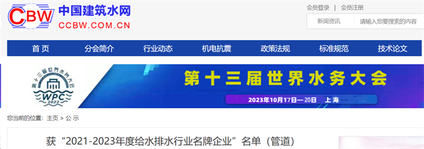 為鼓勵中國建筑金屬結構協會會員中給水排水行業企業在執行國家節能、環保和可持續發展的大政方針以及科技創新、技術進步、科學管理、產品研發、增強自主創新能力等方面取得突出成就,熱心行業事業和公益事業,中國建筑金屬結構協會管道委員會組織開展了“2021-2023 年度給水排水行業名牌、突出貢獻企業”的評選工作。經過企業申報、評審委員會秘書處審驗、協會官方網站征求意見、業內專家、知名學者和權威人士組成的評選委員會評選,最終濟南邁科管道科技有限公司成功獲得該兩項榮譽。