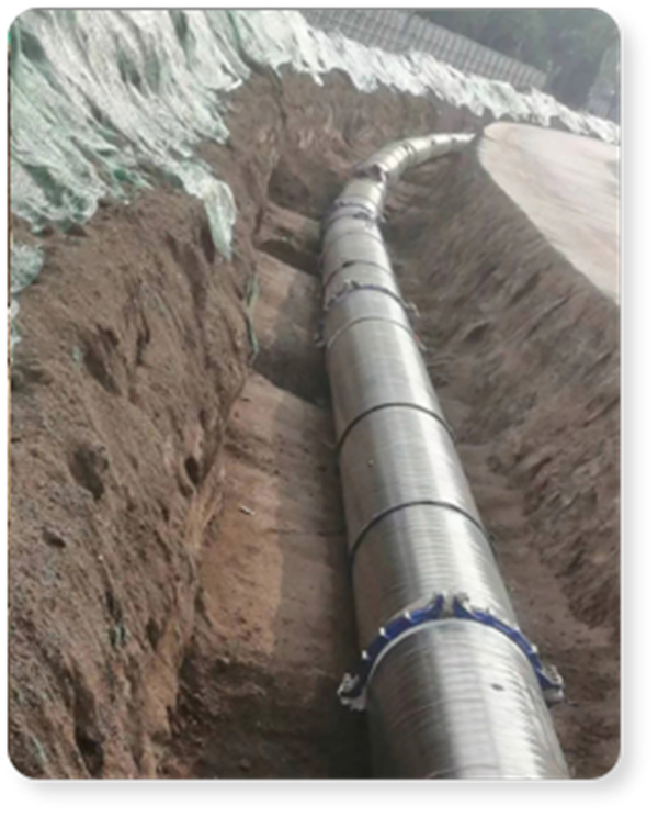 總長度14.8Km,主管線采用DN600、DN800的TPEP螺旋鋼管,為國內(nèi)埋地溝槽連接標(biāo)桿案例。