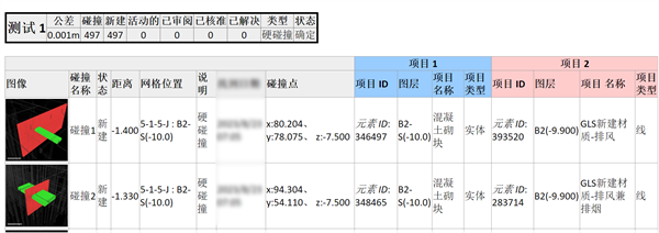 進行模型碰撞檢查,防止遺漏模型中不易觀察或細微末節處的碰撞問題,可直接給出碰撞位置坐標,進行問題位置快速識別,可達到0碰撞的超高要求。