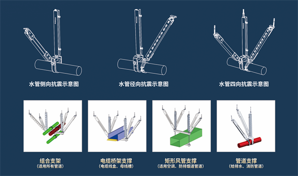 抗震支吊架是與建筑結(jié)構(gòu)體牢固連接,以地震力為主要荷載的抗震支撐設(shè)施,由錨固體、加固吊桿、抗震連接構(gòu)件及抗震斜撐組成。在最開(kāi)始,國(guó)內(nèi)對(duì)于機(jī)電設(shè)施的保護(hù),主要承重作用,基本上沒(méi)有考慮抗震設(shè)計(jì),給系統(tǒng)安全帶來(lái)很大的隱患。