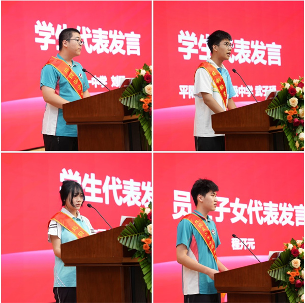 平陰一中劉旸、平陰實驗高中武子碩、平陰工業(yè)學(xué)校王國慶和玫德集團員工子女程開元作為學(xué)生代表分別發(fā)言,誠摯感謝玫德集團的鼎力支持,感恩瑪鋼助學(xué)基金二十年如一日的守護。他們表示,無論身在何方,都會做家鄉(xiāng)的宣傳者,做玫德精神的傳承者!