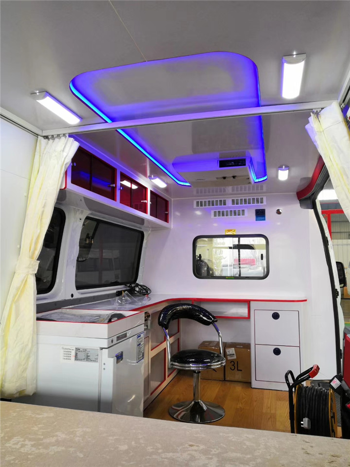 | 其它 | 1.車身可噴涂或粘貼宣傳文字,標識;車身兩側可增加或封閉部分窗戶。頂部封閉不可開啟。2.專用裝置:血液冰箱、LED屏、電視、電源系統、沙發、休息床,后部LED屏為選裝件。3.該車側防護和后防護為裙板式結構,側面以及后部裙板與防護相干涉,故防護可豁免。側面裙板離地高度為350mm。后裙板離地高度為440mm。4.ABS型號:3631010-C2000,4460046440;生產廠家:東科克諾爾商用車制動系統(十堰)有限公司,威伯科汽車控制系統(中國)有限公司。5.隨底盤選裝駕駛室。整車長/軸距(mm)的對應關系為:8430/4700,8230/4500,7930/4200,7530/3800。 | ||